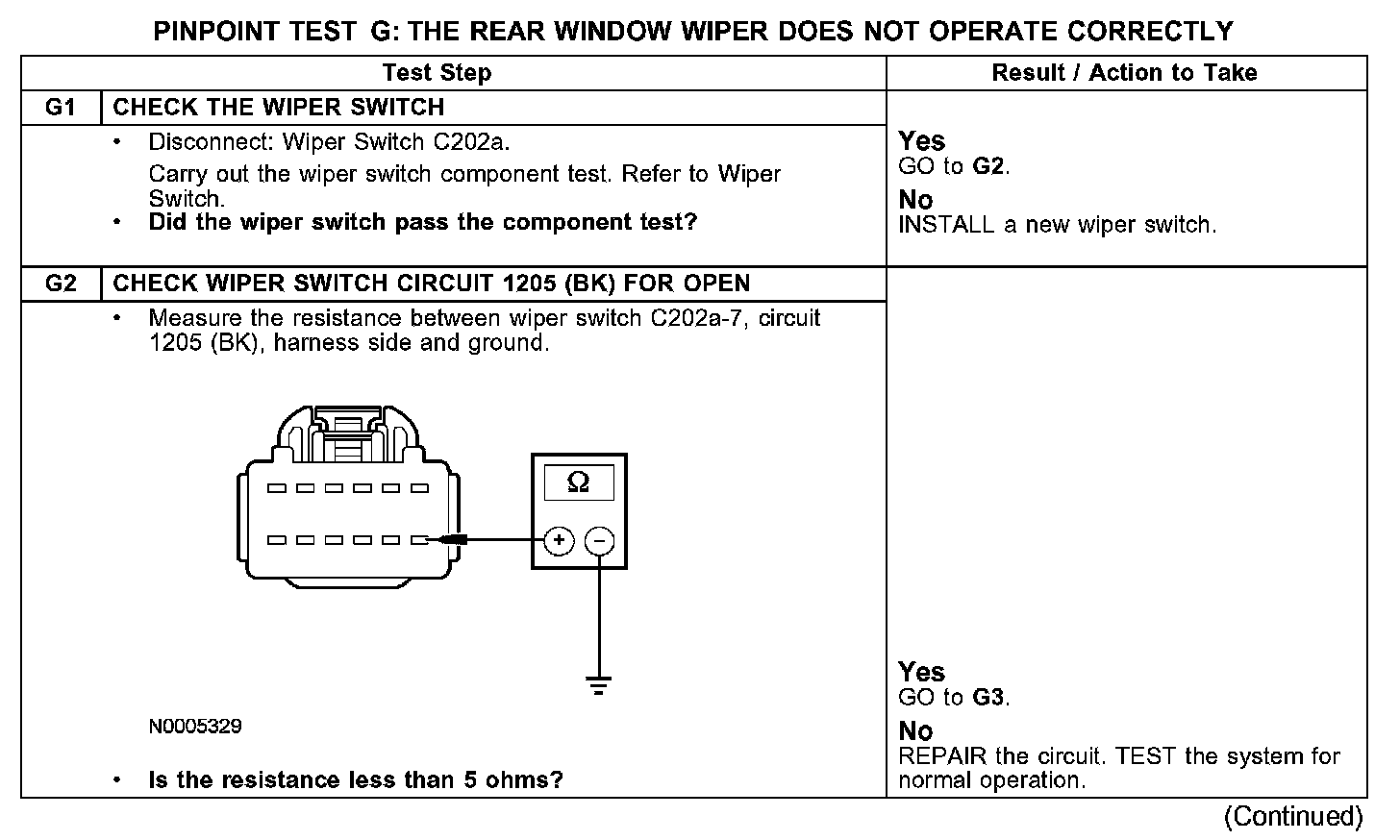PINPOINT TEST G: THE REAR WINDOW WIPER DOES NOT OPERATE CORRECTLYG1-G2: