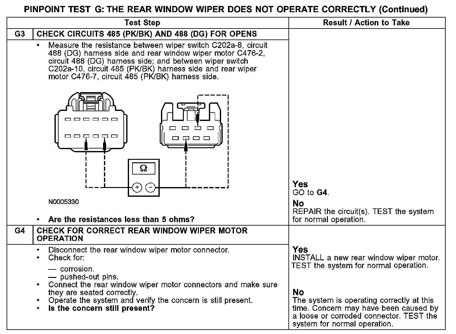 Test G: The Rear Window Wiper Does Not Operate Correctly