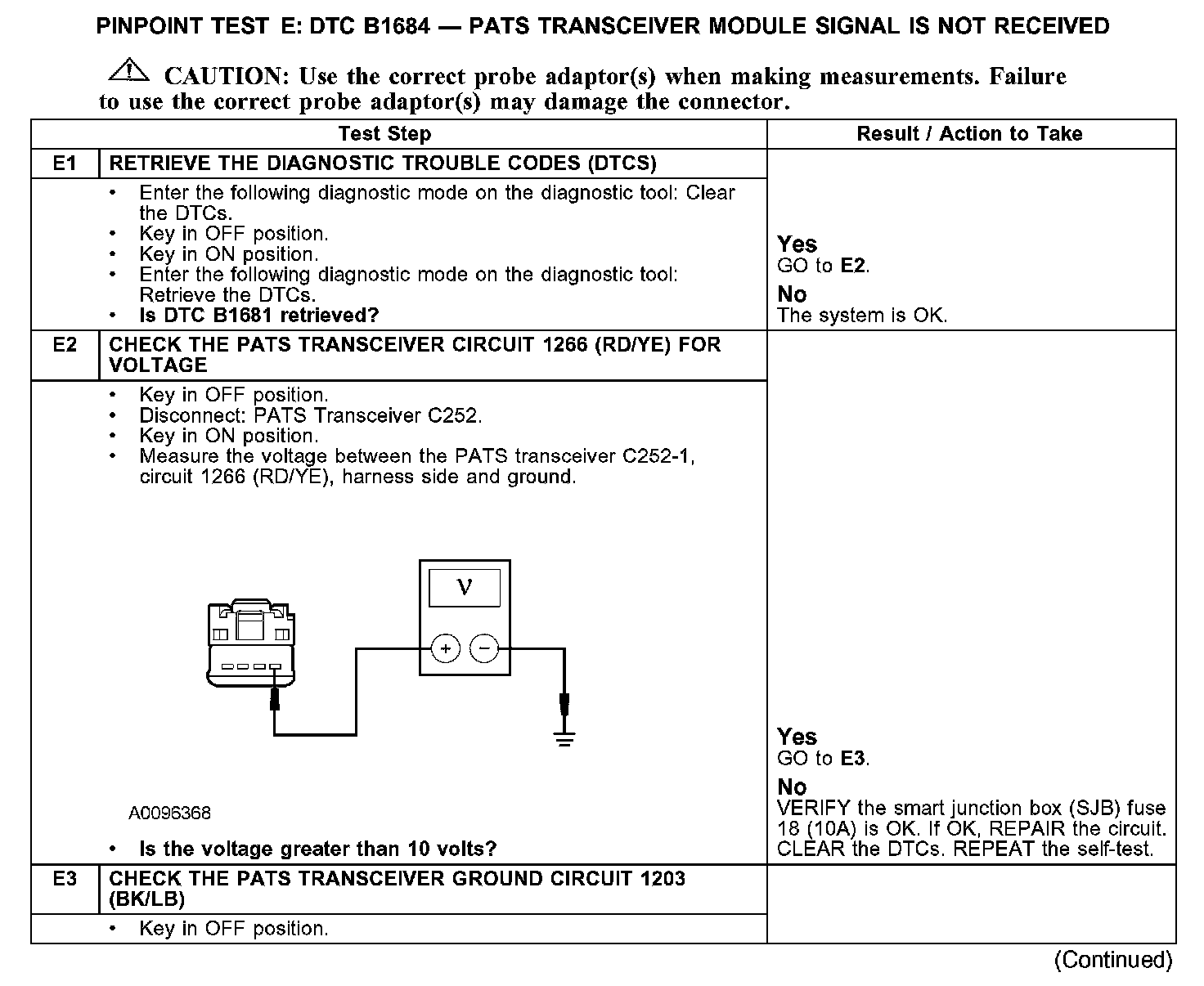 PINPOINT TEST E: DTC B1681-PATS TRANSCEIVER MODULE SIGNAL IS NOT RECEIVEDE1-E3: