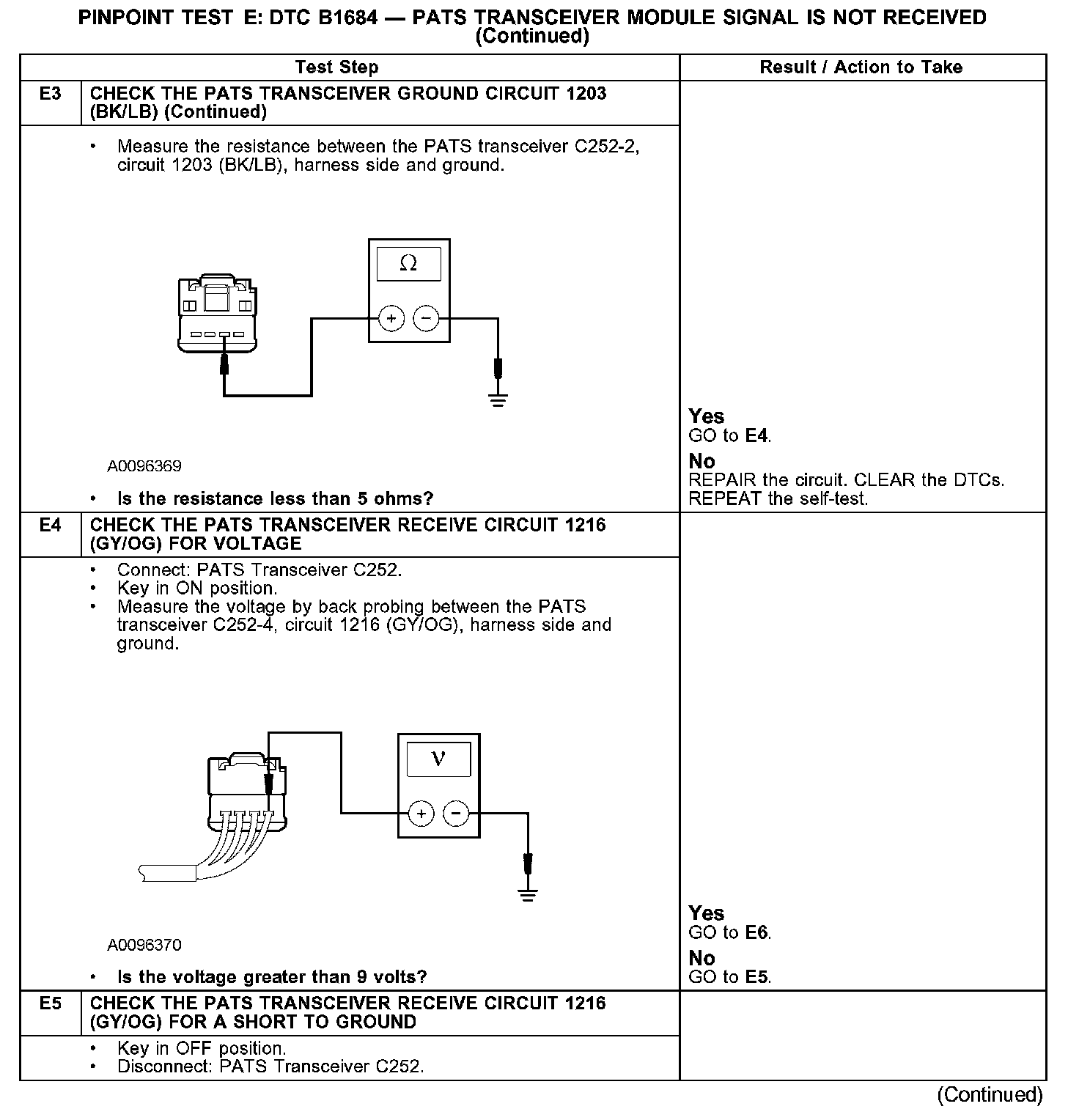 Test E: DTC B1681-PATS Transceiver Module Signal Is Not Received