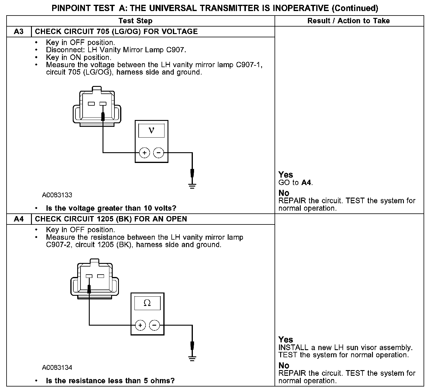 PINPOINT TEST A: THE UNIVERSAL TRANSMITTER IS INOPERATIVEA1-A2: