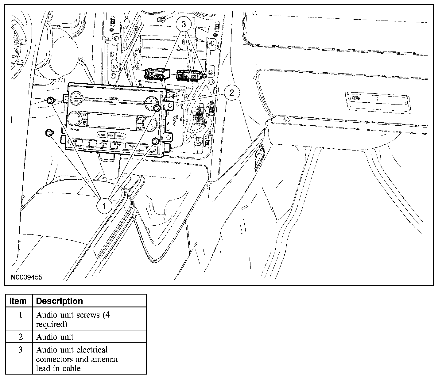 NOTE: If installing a new navigation audio unit, remove the navigation digital versatile disc (DVD) if possible, before sending the audio unit to an authorized audio system repair facility.