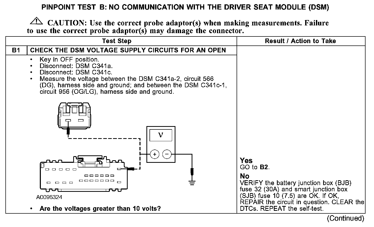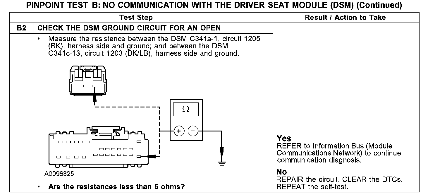 PINPOINT TEST B: NO COMMUNICATION WITH THE DRIVER SEAT MODULE (DSM)B1: