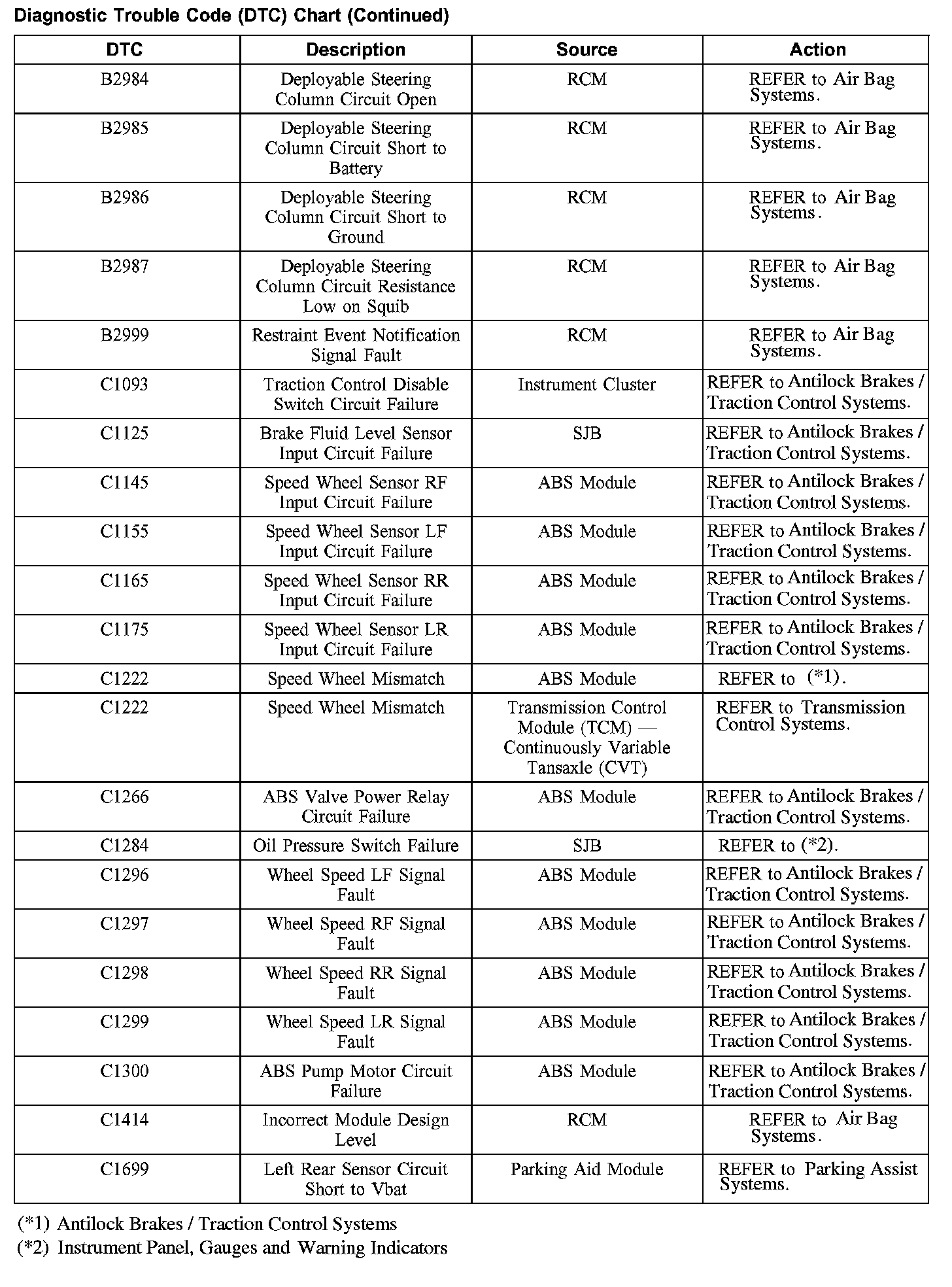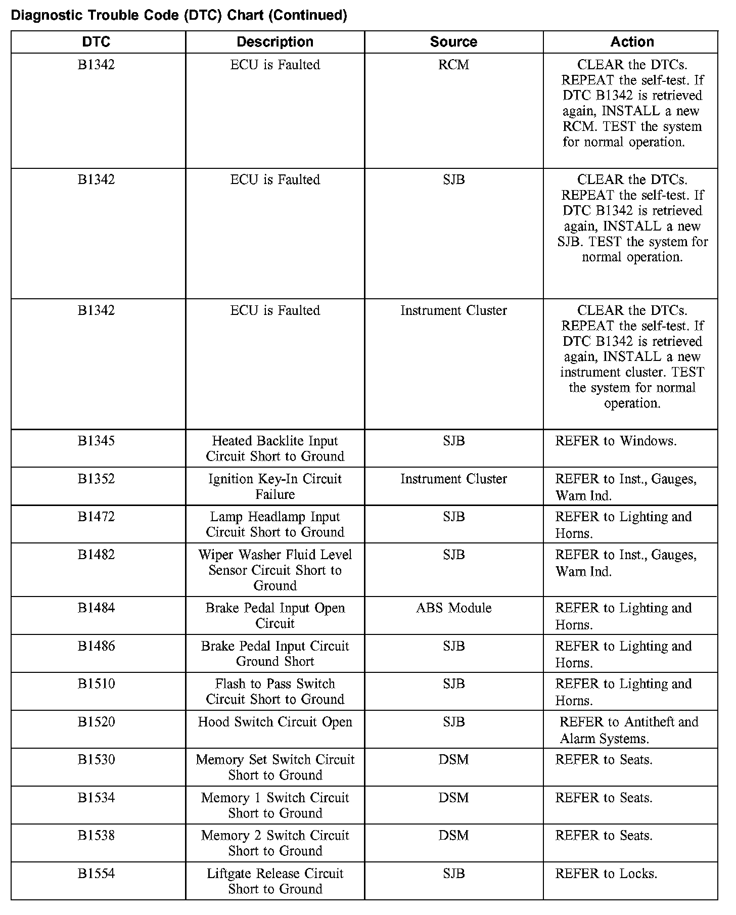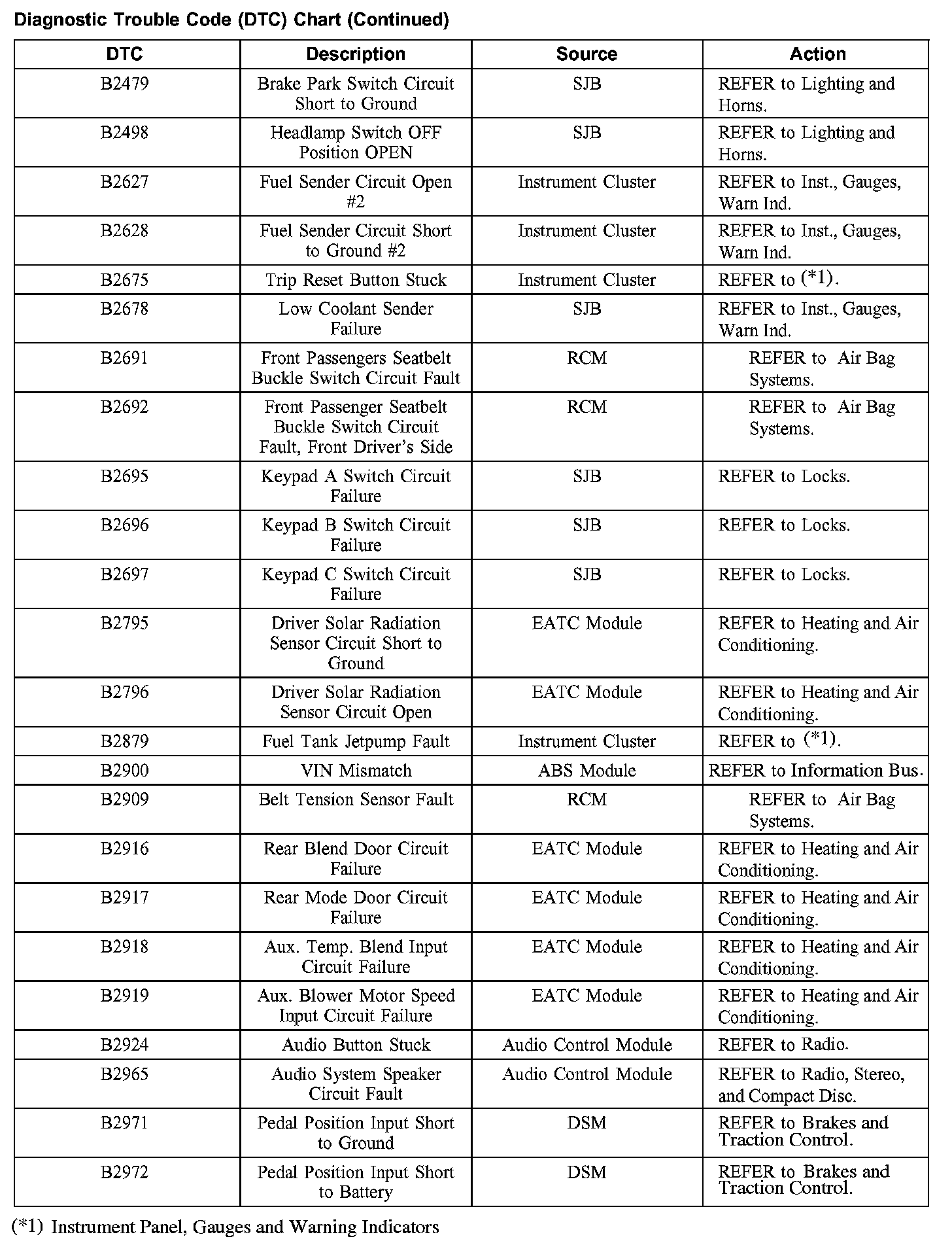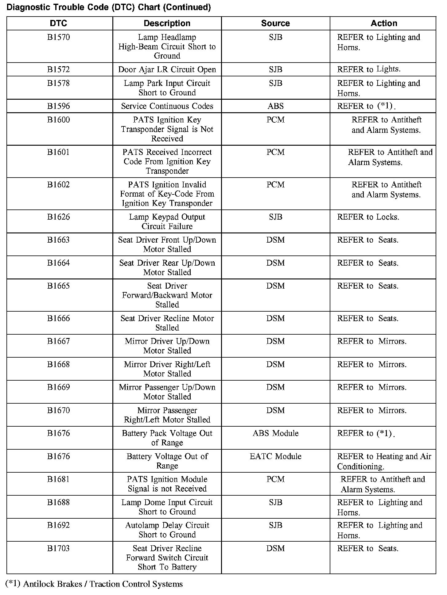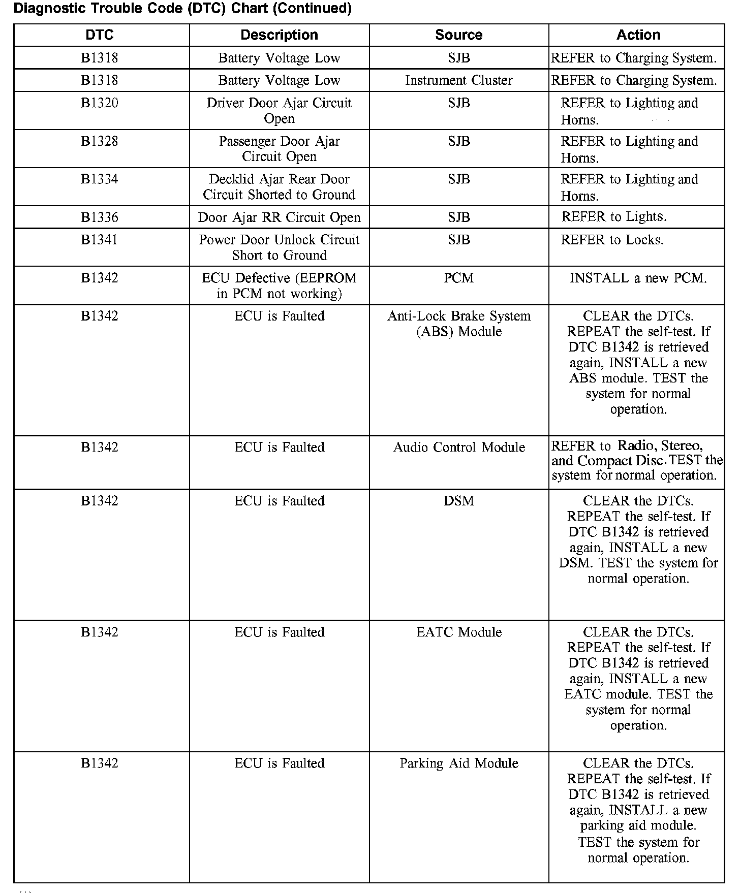 DIAGNOSTIC TROUBLE CODE CHARTB1003-B1318: