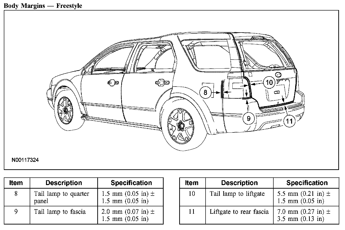 - Freestyle front frame rails 20 mm (0.78 in) longer than Five Hundred, Montego