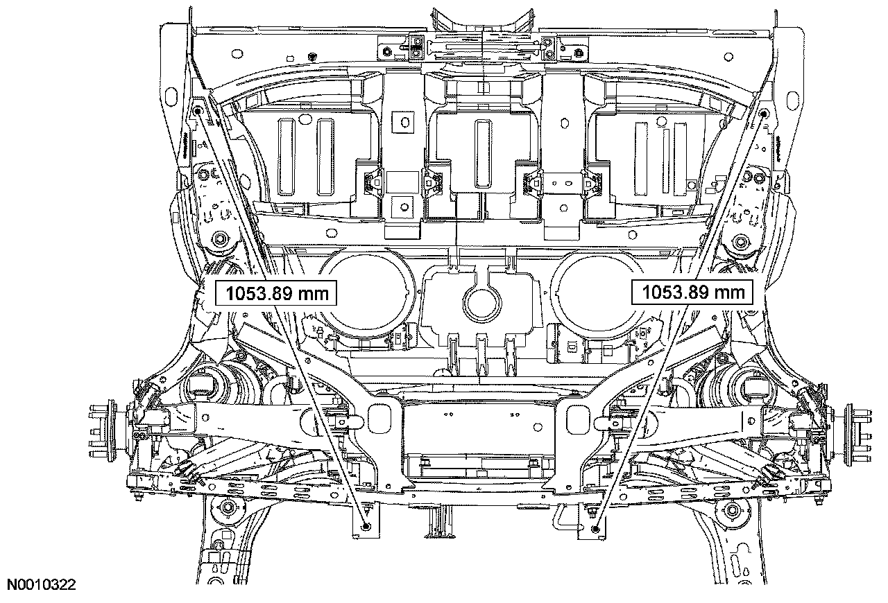 2. With a wax pencil, mark the relational alignment of the rear subframe to the underbody at the mounting locations.
