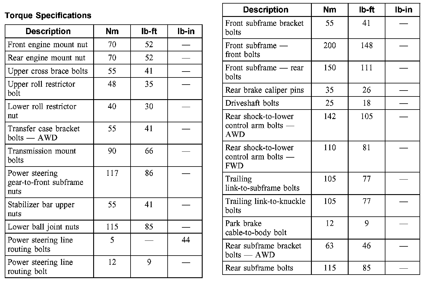 Torque Specifications: