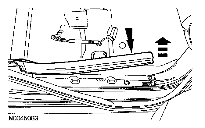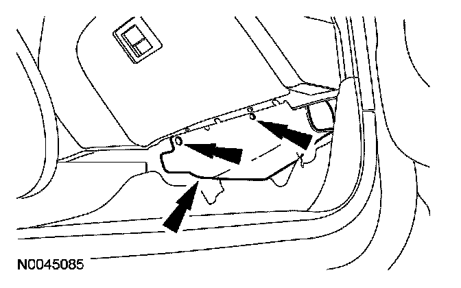 - Pull the top outboard edge of the A-pillar trim panel toward the inside of the vehicle to disengage the retaining clips.