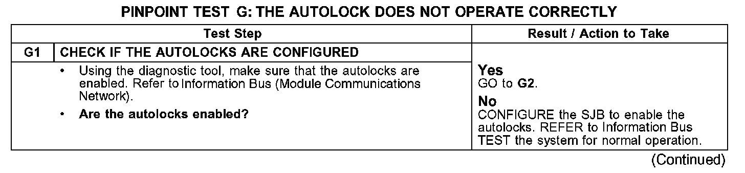 PINPOINT TEST G: THE AUTOLOCK DOES NOT OPERATE CORRECTLYG1: