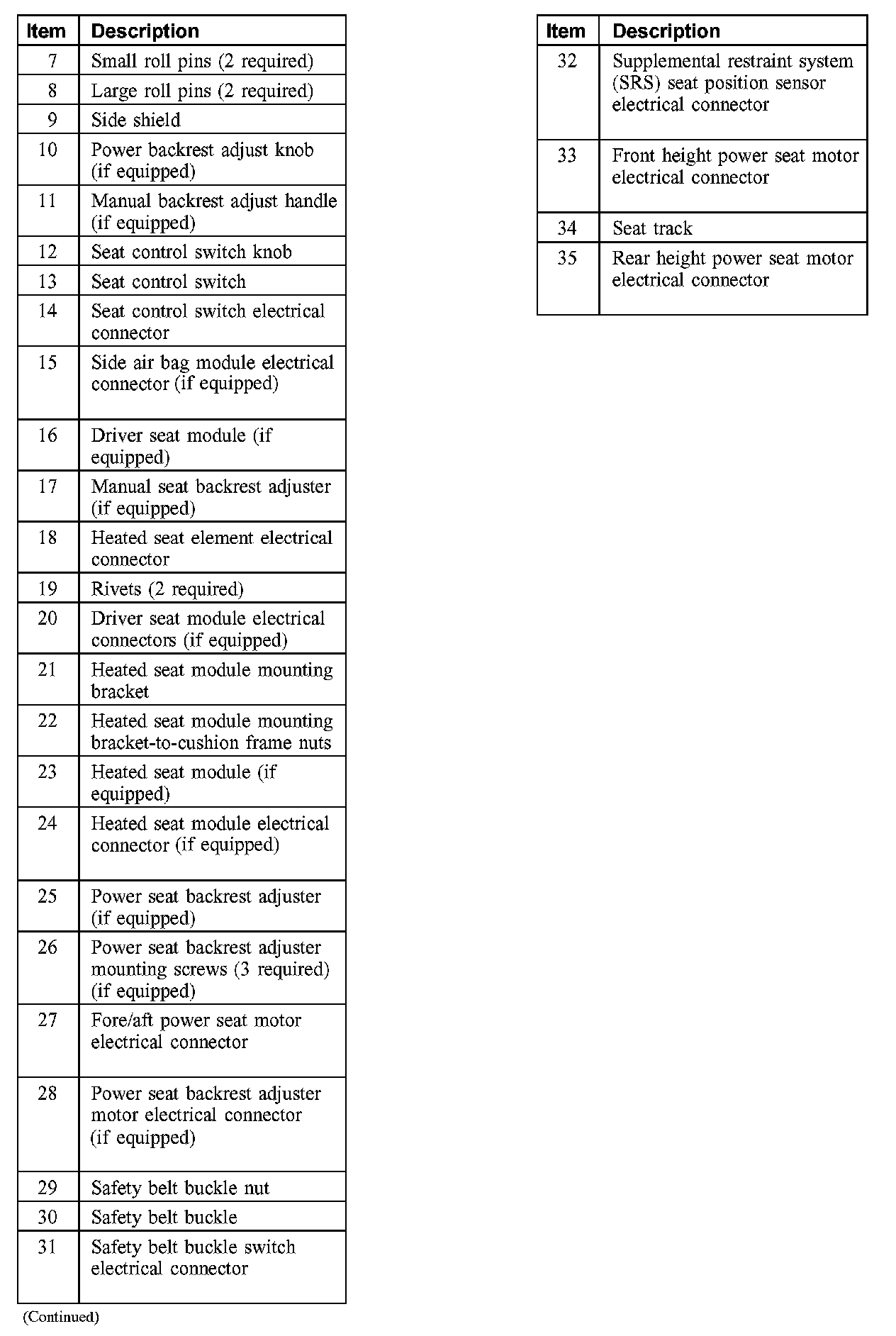 - If a seat equipped with a supplemental restraint system (SRS) component is being serviced, the SRS must be depowered.