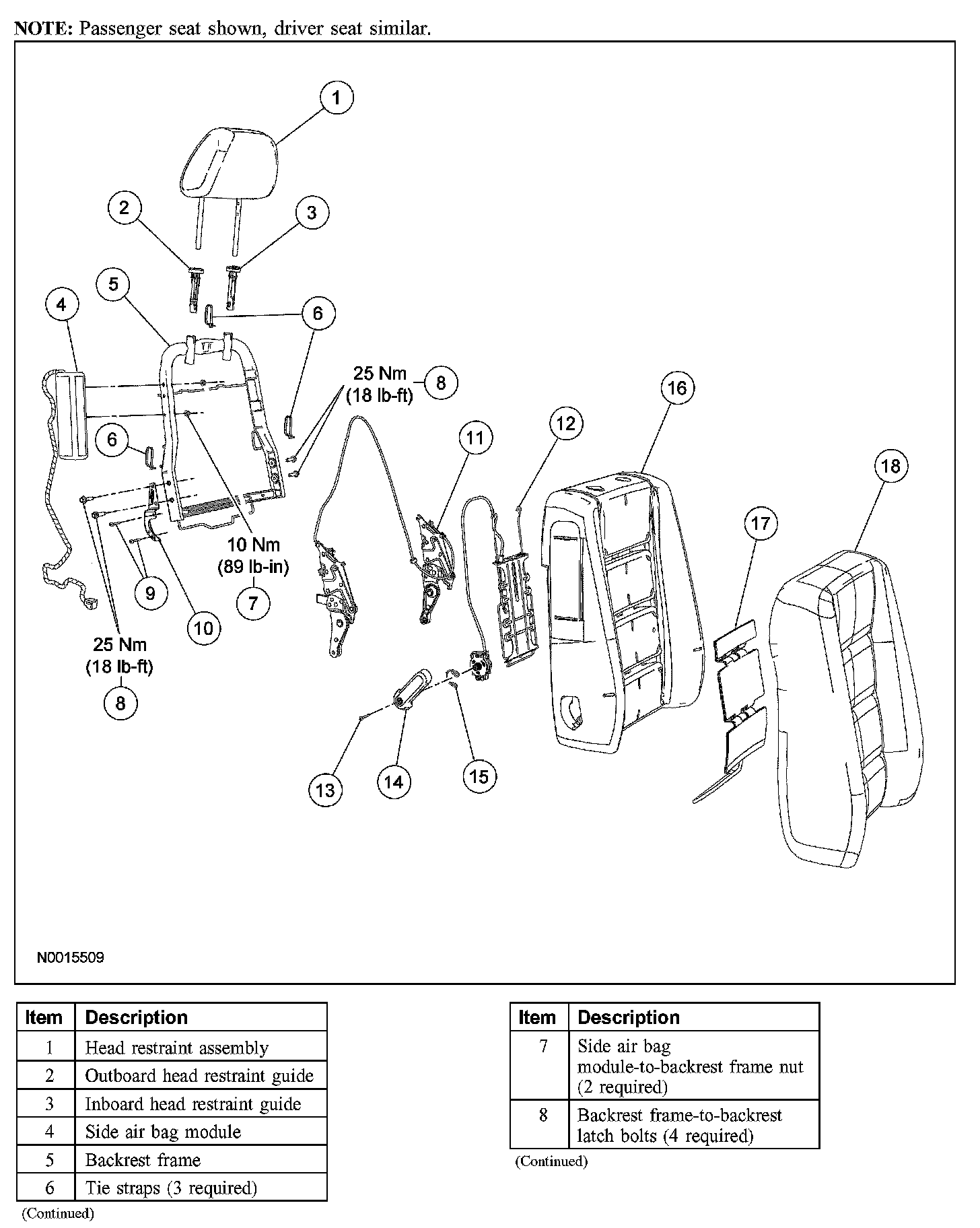 16. NOTE: The head restraint guides are not interchangeable.
