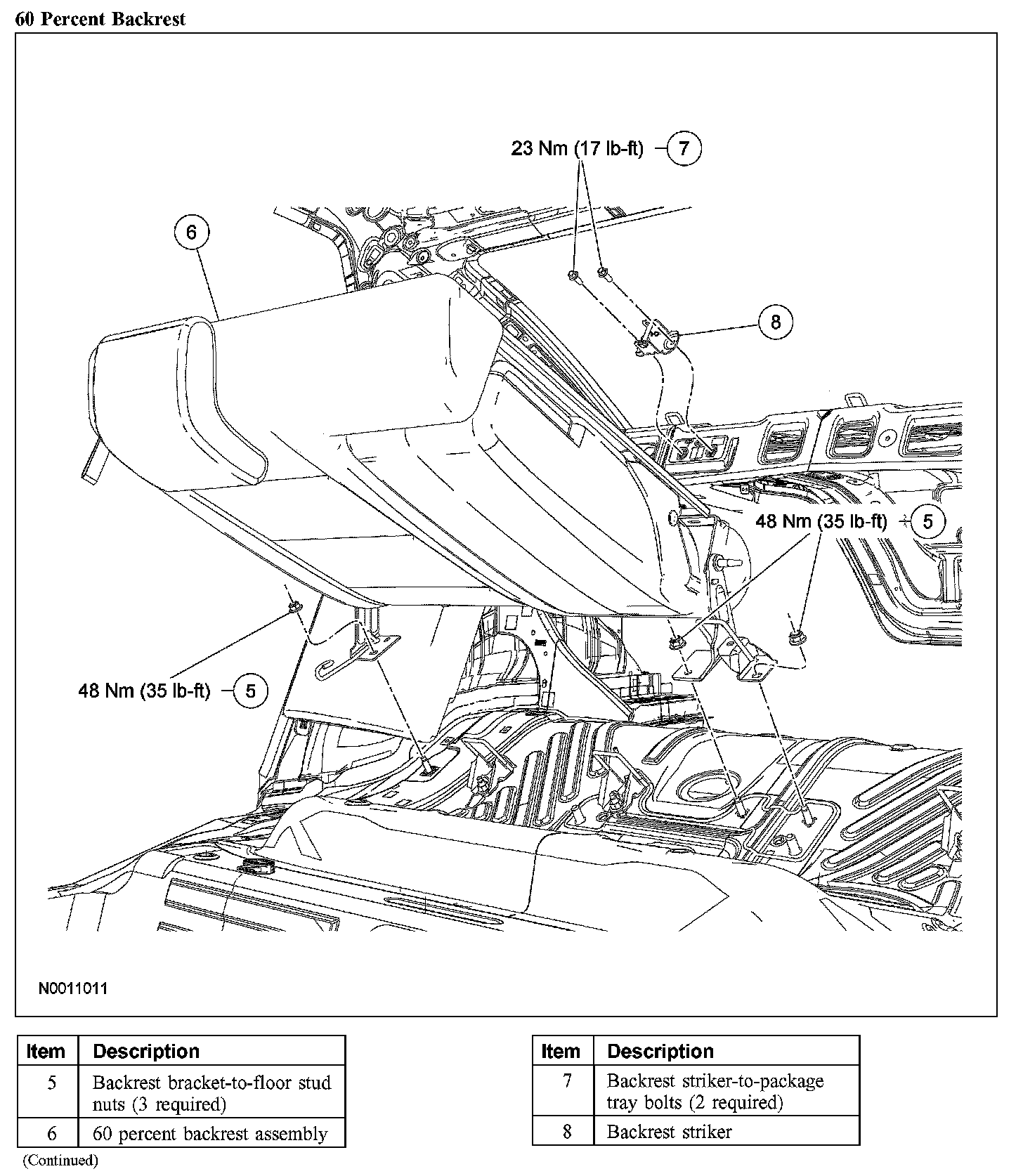 5. Remove the 3 60 percent backrest lower nuts at the 2 backrest mounting brackets.