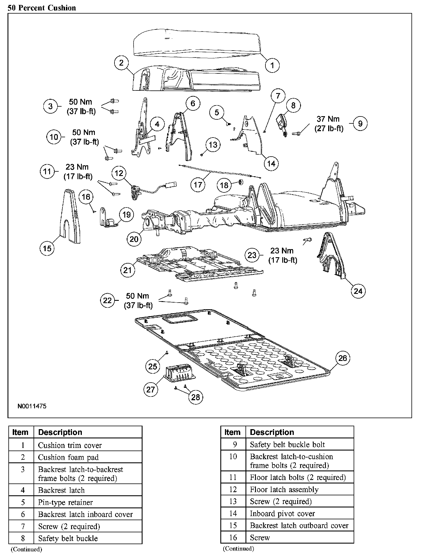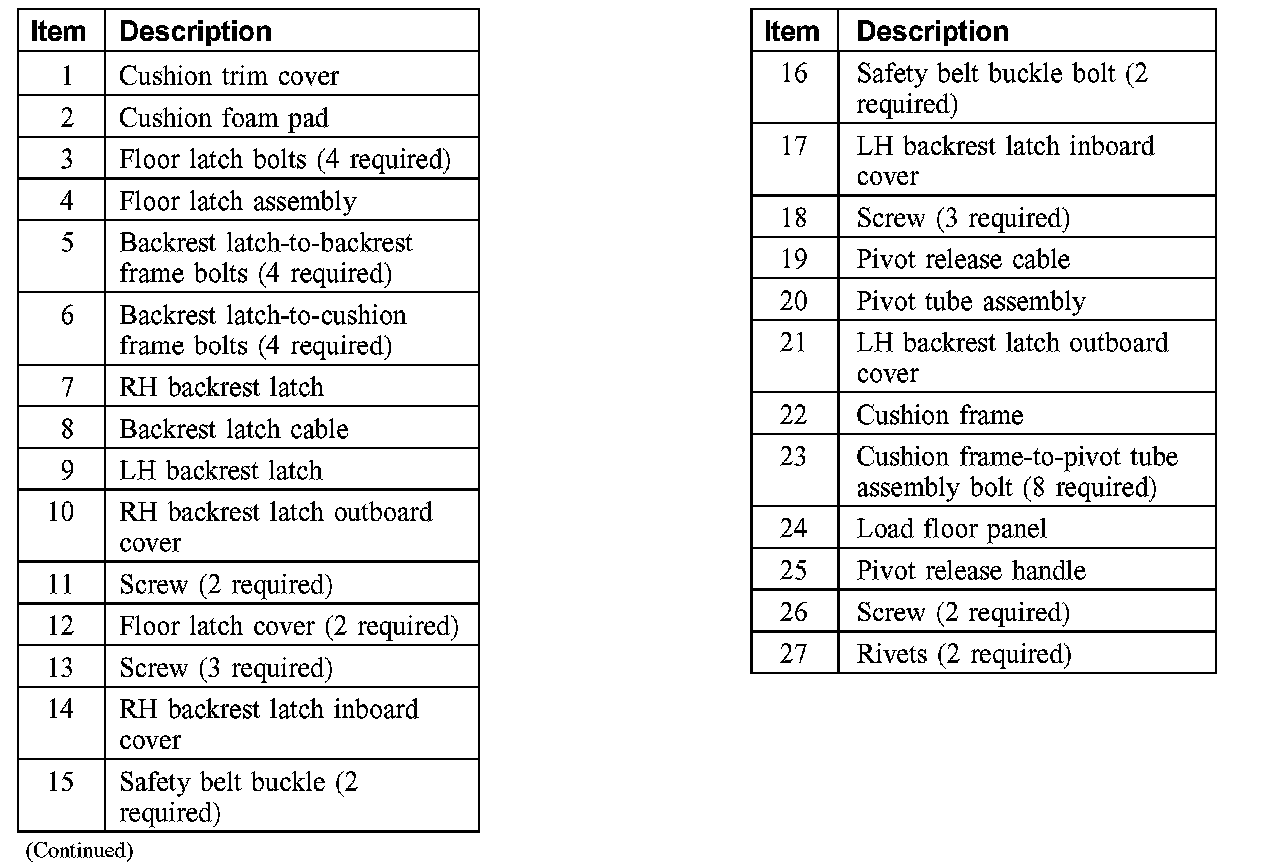 SEAT - EXPLODED VIEW, THIRD ROW50 Percent Backrest: