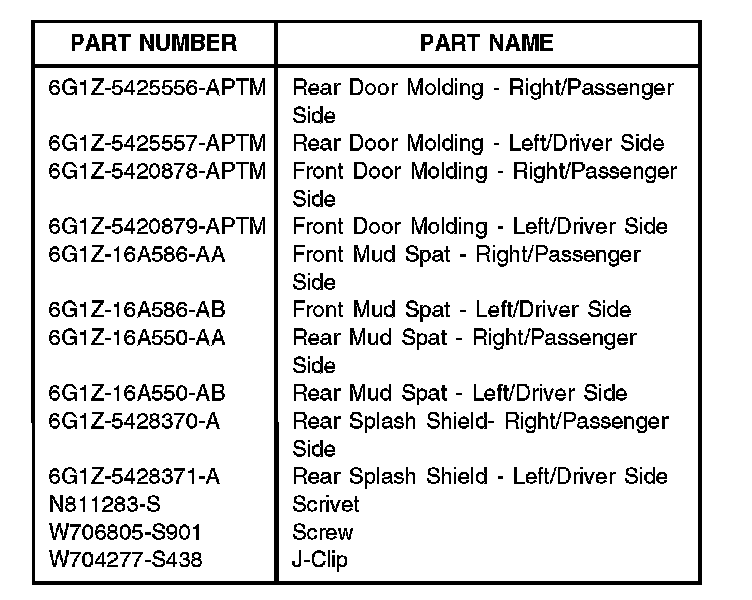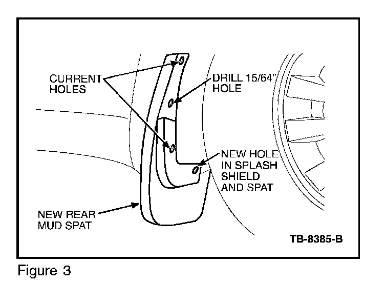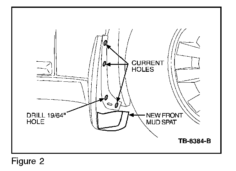 5. Align new mud spat to fender/rocker molding using wheel spat holes (Figure 2).