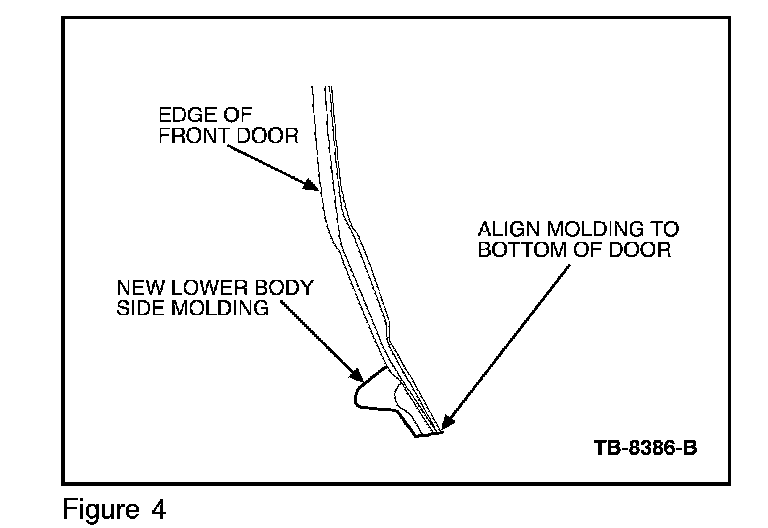 3. Align lower (thin) edge of molding to lower edge of door (Figure 4).