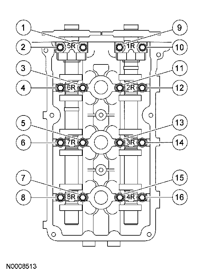 ^ Stage 1: Tighten fasteners 1 through 8 to 25 Nm (18 lb-ft).