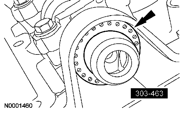 22. Install the crankshaft damper bolt and rotate the crankshaft keyway to the 11 o'clock position to locate top dead center (TDC).