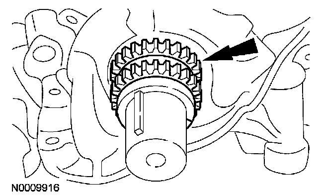 34. Install the crankshaft sprocket with the timing marks facing outward.