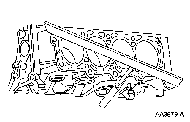 Use a straight edge and a feeler gauge to inspect the cylinder block for flatness. If the cylinder block is distorted, install a new short block assembly.