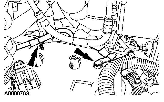 41. Install the power steering pressure (PSP) tube bracket bolt and connect the PSP switch electrical connector.