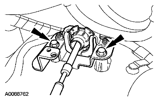 22. Remove the 2 bolts and position the shift cable aside.