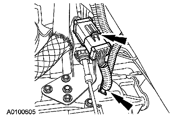 ^ Detach the electrical connector from the shift cable bracket.