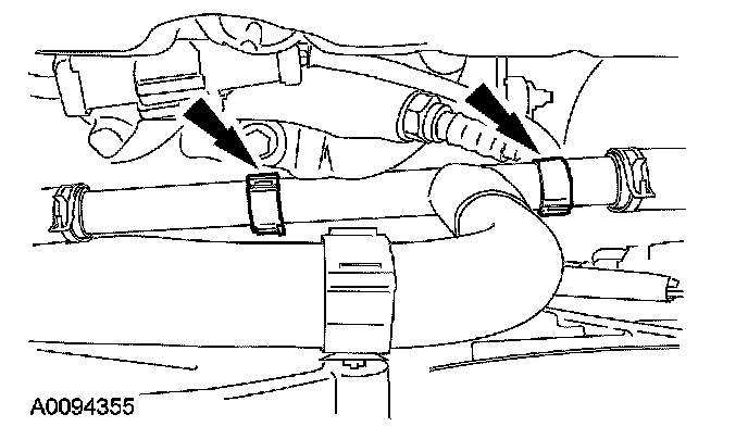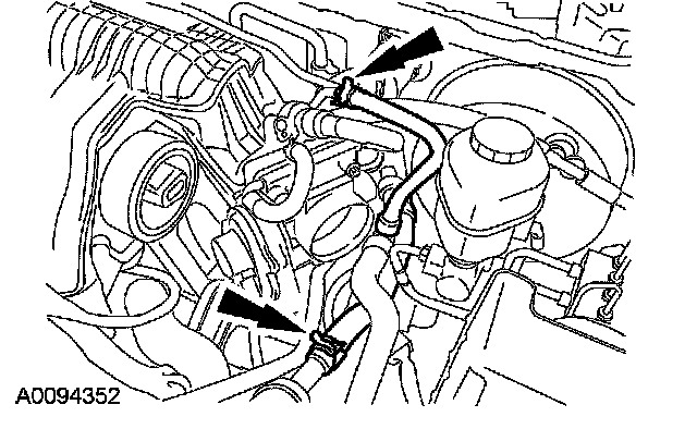 28. Disconnect the coolant hoses from the thermostat housing.