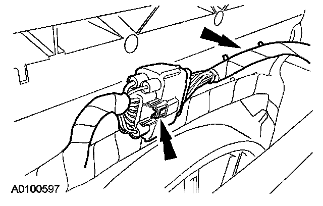 ^ Disconnect the electrical connector from the shift cable bracket.