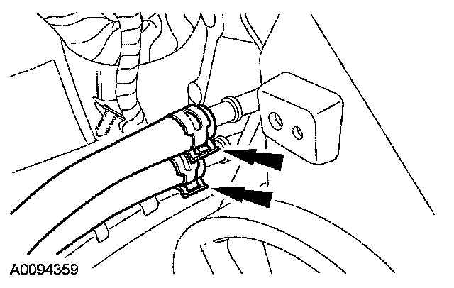 17. Disconnect the power steering reservoir hose and detach the retainer.