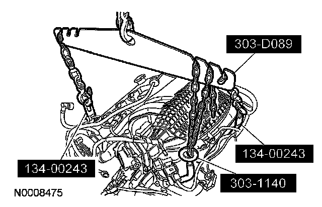 75. Using the special tools and a suitable engine crane, support the powertrain.