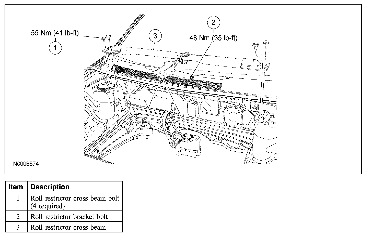 2. Remove the 4 roll restrictor cross beam bolts.