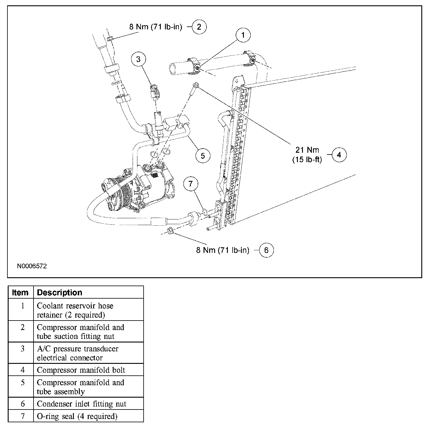 8. Remove the compressor manifold and tube assembly.