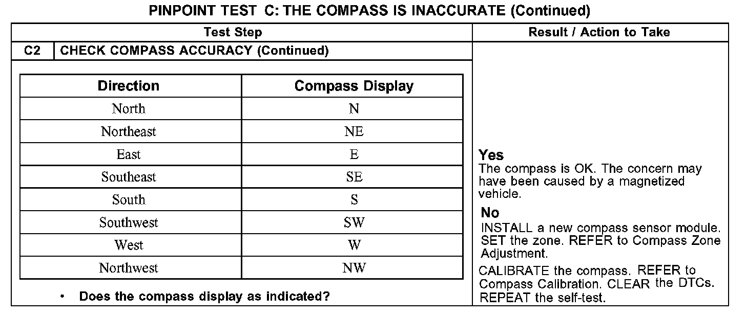 PINPOINT TEST C: THE COMPASS IS INACCURATEC1-C2: