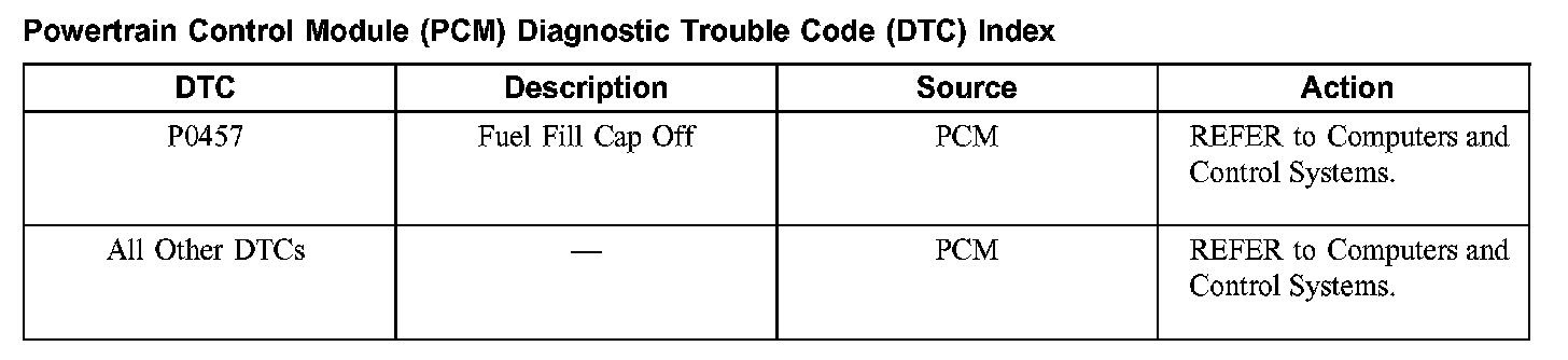 Powertrain Control Module (PCM) DTC Index