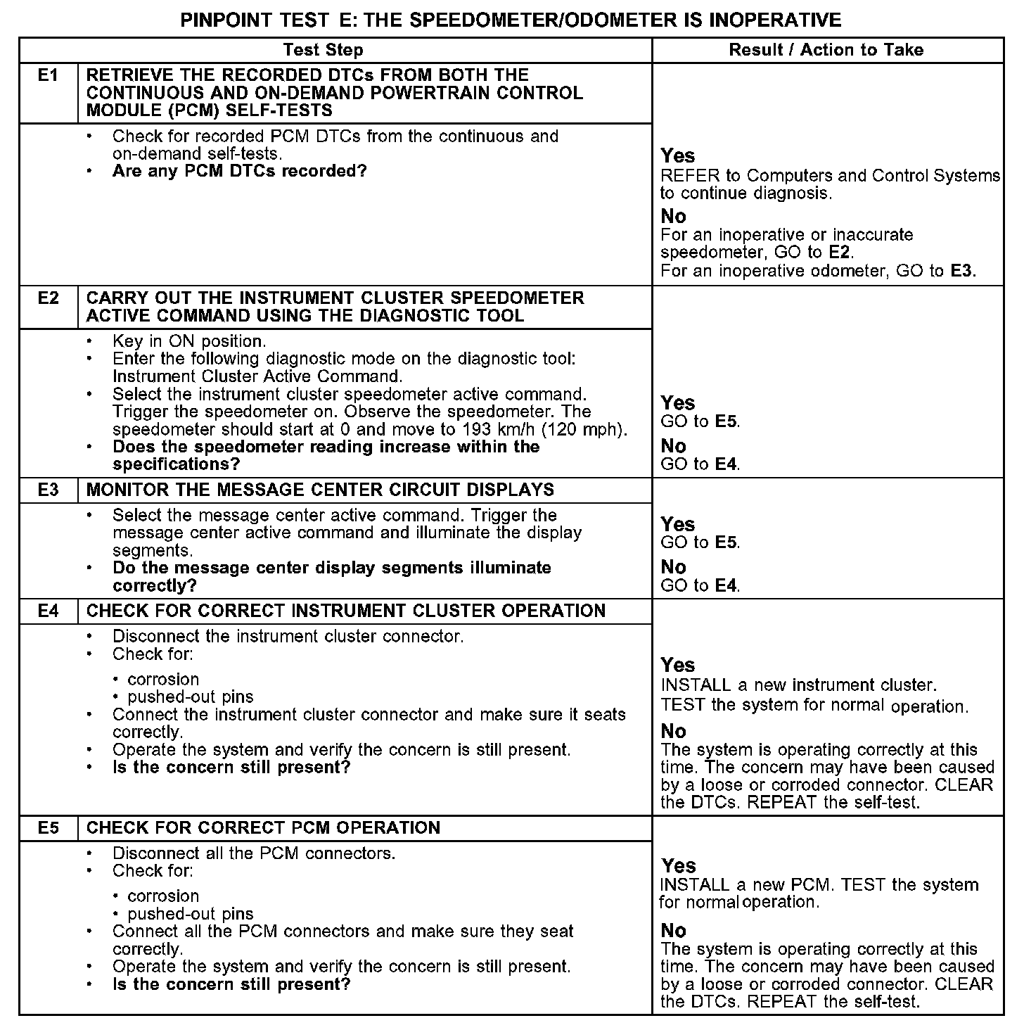 PINPOINT TEST E: THE SPEEDOMETER/ODOMETER IS INOPERATIVEE1-E5: