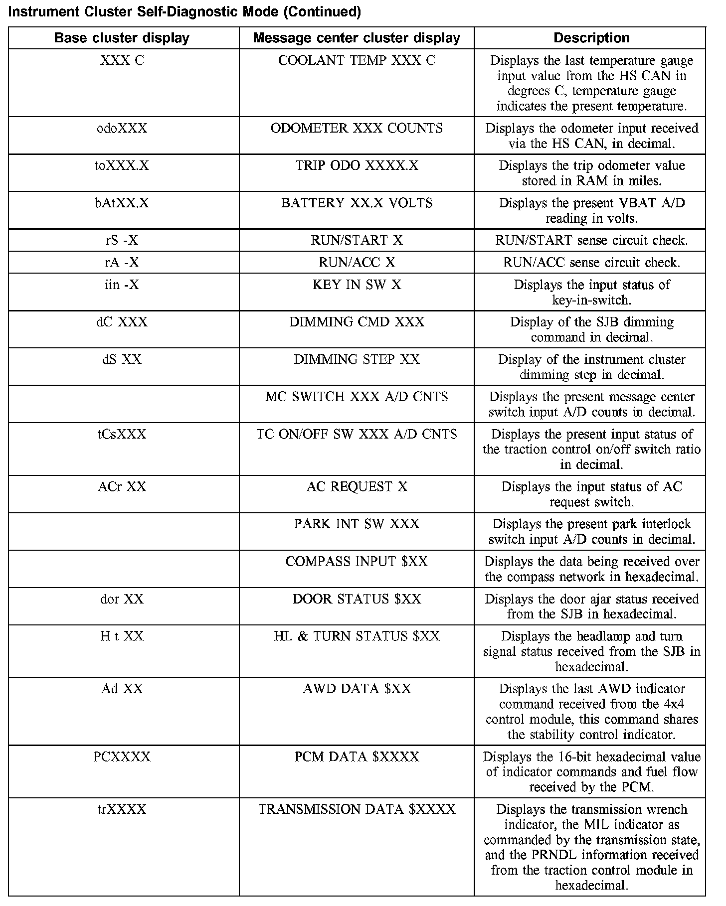 Instrument Cluster Self-Diagnostic Mode (Part 2):