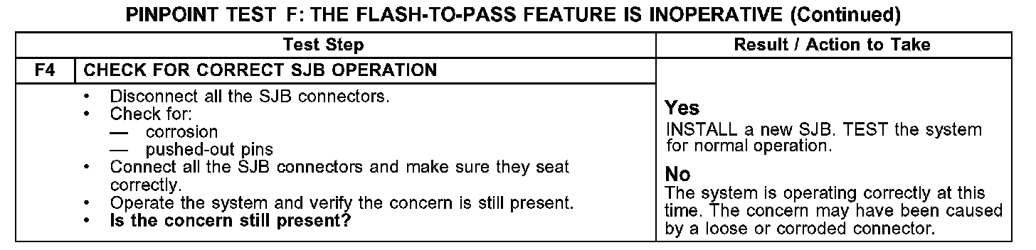 PINPOINT TEST F: THE FLASH-TO-PASS FEATURE IS INOPERATIVEF1-F3: