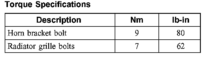Torque Specifications: