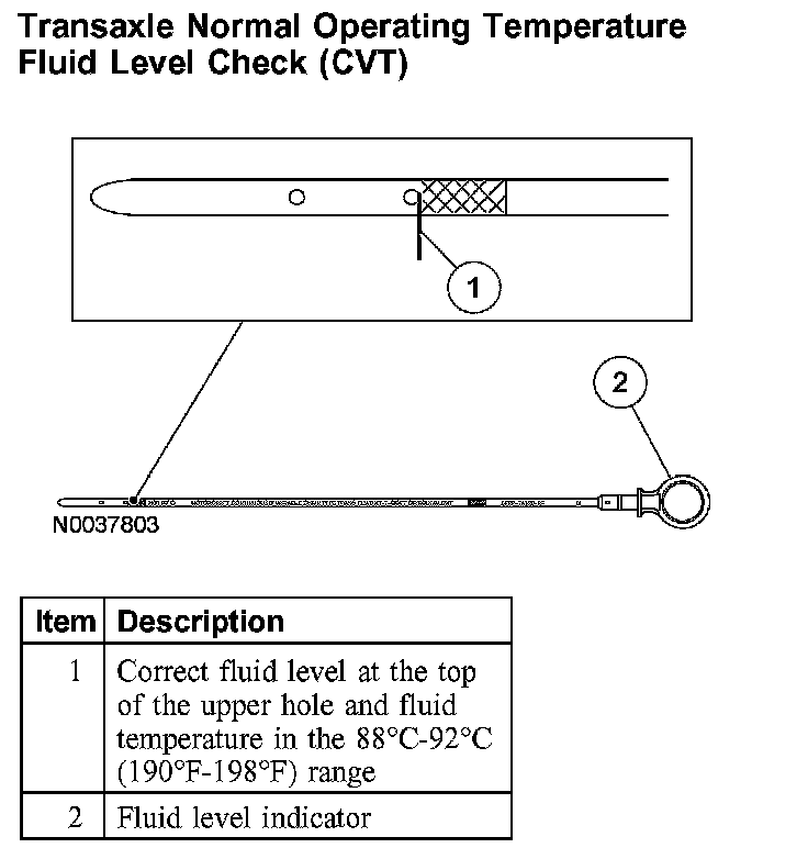 Transaxle Normal Operating Temperature Fluid Level Check (CVT)Transaxle Normal Operating Temperature Fluid Level Check (CVT):