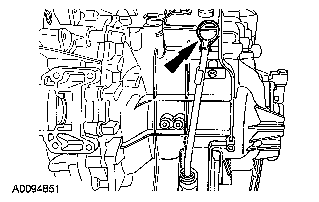 NOTE: This procedure is designed for checking the fluid level on a vehicle that has just come in off the road with the transmission fluid in the normal operating range 88°C - 92°C (190°F - 198°F).