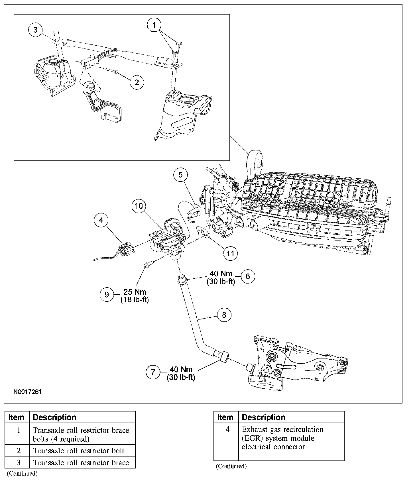 5. NOTE: When installing the EGR system module, install a new EGR system module gasket with the side with the raised ring facing the intake manifold.