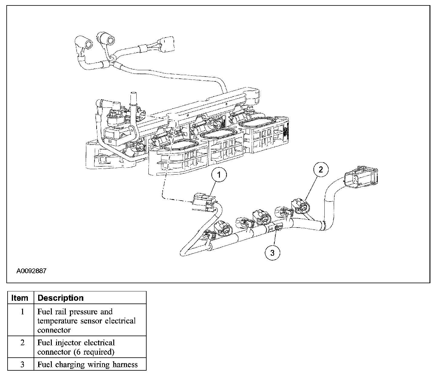 3. Disconnect the 6 fuel injector electrical connectors.