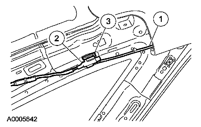 1 Cut the fabric tether close to the rear of the headliner.