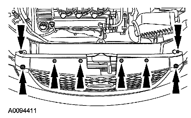 - Make sure the radiator support and front impact severity sensor mating surfaces are clean and debris free.