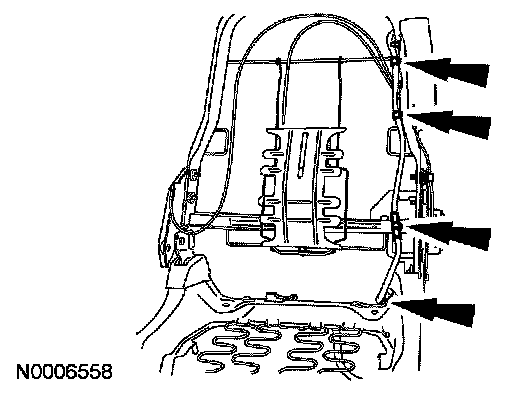CAUTION: Make sure the side air bag module wiring harness is not pinched between the side air bag module and the backrest frame.