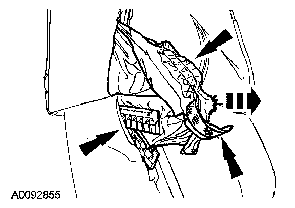 18. Release the side air bag module backrest trim cover chute J-clip from around the side air bag module cover.