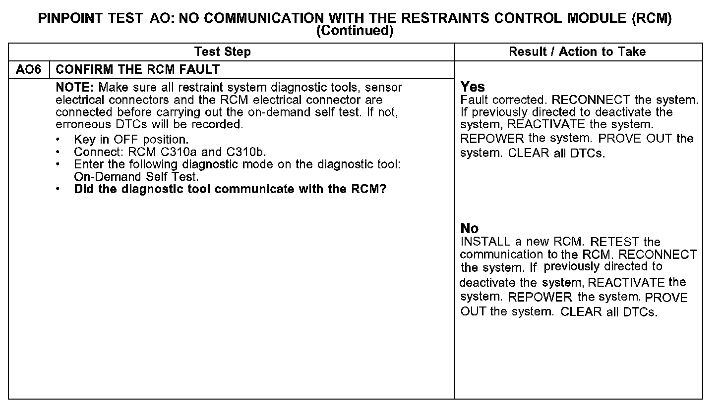 Tests AO: No Communication With the Restraints Control Module (RCM)