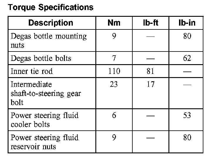 Torque Specifications: