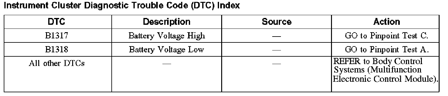 Instrument Cluster Diagnostic Trouble Code (DTC) Index