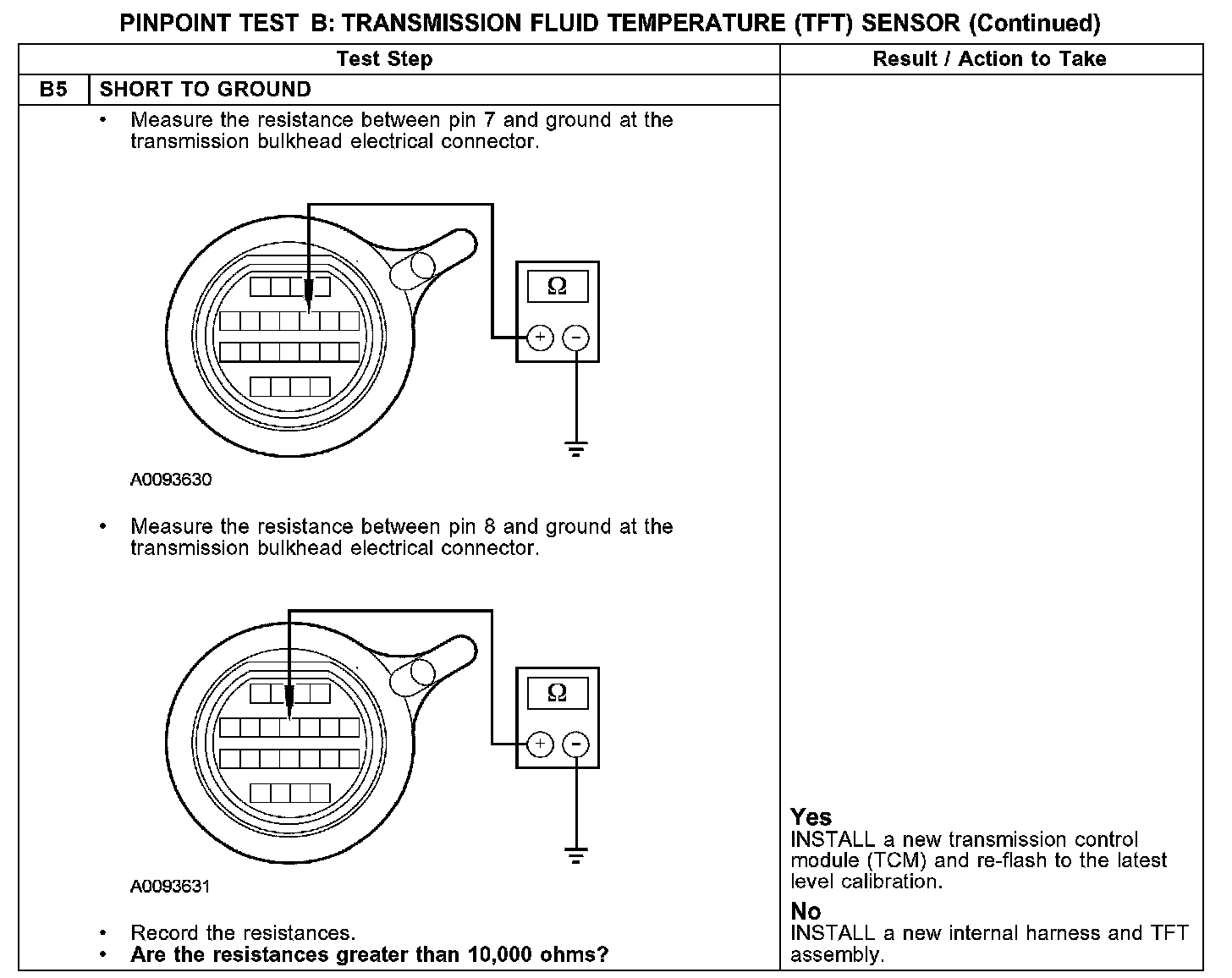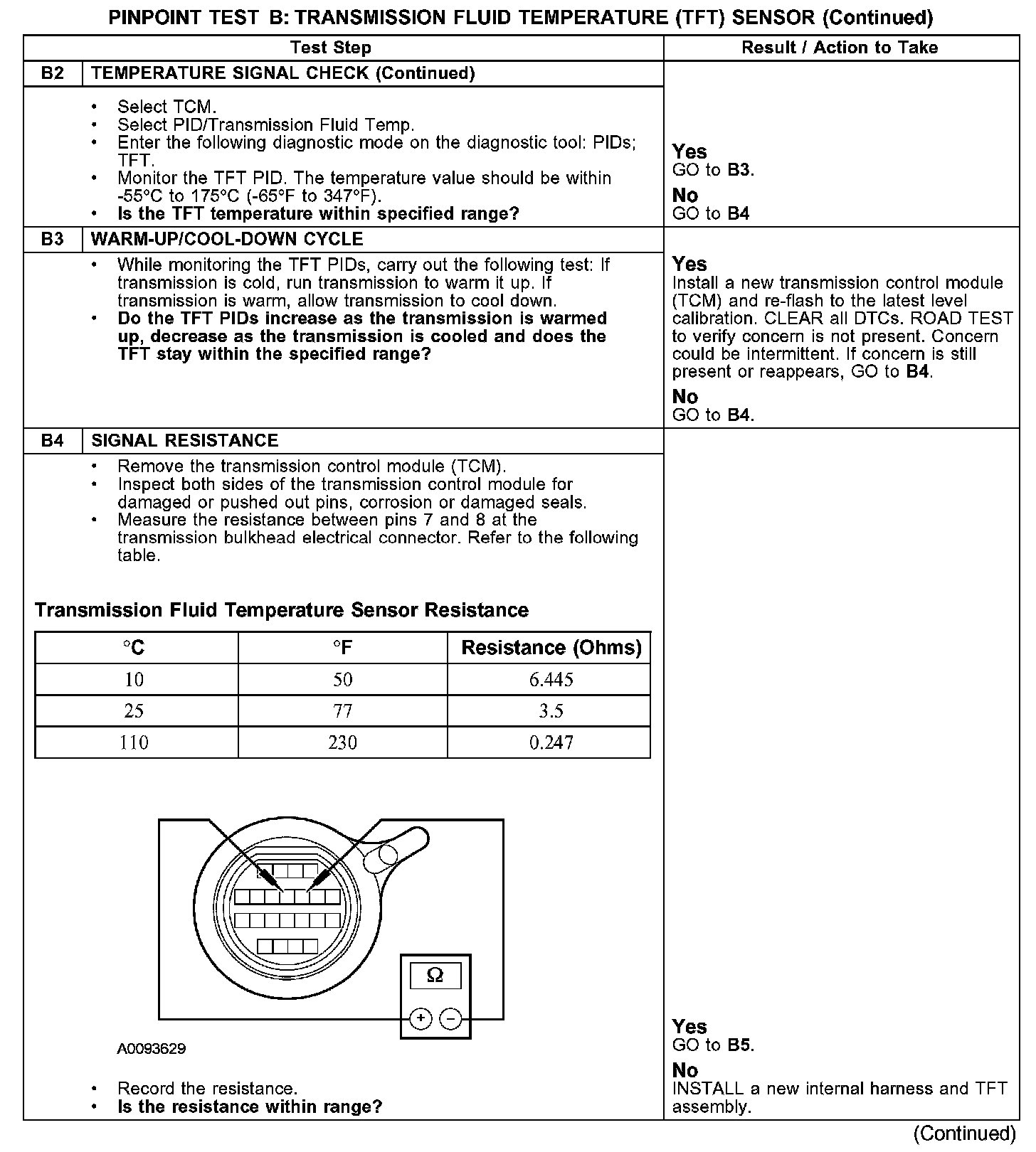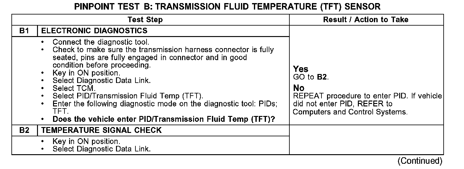 Test B: Transmission Fluid Temperature (TFT) Sensor